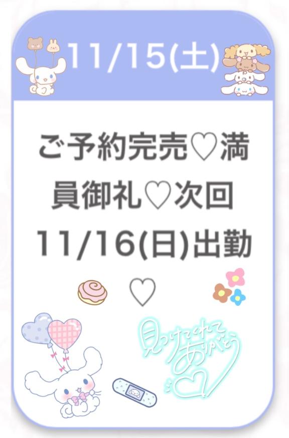 次回13:00~ 13:00- 20:00 | 🩷店長おすすめ🩷11/22(土)出勤ご予約受付中🩷 | 🩷店長おすすめ🩷11/22(土)出勤ご予約受付中🩷 | 🩷店長おすすめ🩷11/22(土)出勤ご予約受付中🩷 | 12:00 - 20:00 |